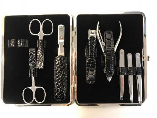 Zestaw podróżny Classic Inox marki Zwilling składa się z 10 elementów, w których skład wchodzą nożyczki do paznokci, nożyczki do skórek, obcinacz do paznokci, pilnik do paznokci, pesęta skośna, pęseta prosta, pęseta, cążki do paznokci, cążki do skórek, narzędzie do manicure.