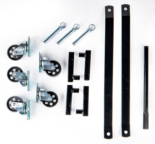 Ze względu na swoją konstrukcję, dolne elementy z osadzonymi kółkami mogą zostać podniesione i zablokowane, sprawiając, że stojak będzie zajmował mało miejsca w garażu czy warsztacie
