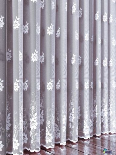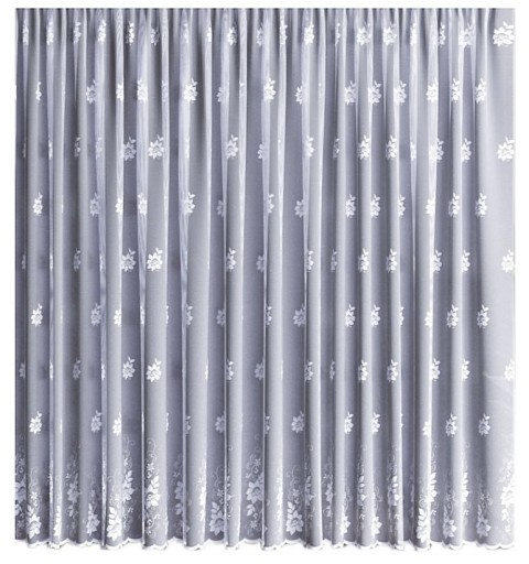 Przedmiotem sprzedaży jest firana żakardowa ze zdobieniem delikatnym kwiatowym. Firana jest w kolorze białym. Nie zacienia pomieszczenia. Wzór po całości.