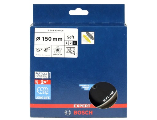 Talerze szlifierskie firmy BOSCH charakteryzują się wysoką wytrzymałością i dużą trwałością, a dzięki specjalnej geometrii krawędzi talerza (w kształcie pagody) firma BOSCH zmniejszyła sztywność talerza w strefach brzegowych uzyskując tym samym dużo lepsze i skuteczniejsze właściwości szlifowania, zwłaszcza powierzchni zaokrąglonych, czy szlifowanie krawędzi. Dodatkowo w talerzach firmy BOSCH zastosowano specjalną piankę, która idealnie dopasowuje się do obrabianej powierzchni i pozwala uzyskać perfekcyjny efekt końcowy obrabianego materiału.