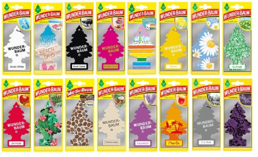 Choinki Wunder Baum są znane i dostępne na całym świecie i cieszą się ogromną popularnością. W ofercie znajduje się kilkanaście rodzajów drzewka o różnych nutach zapachowych, spośród których każdy z pewnością wybierze odpowiedni zapach dla siebie.