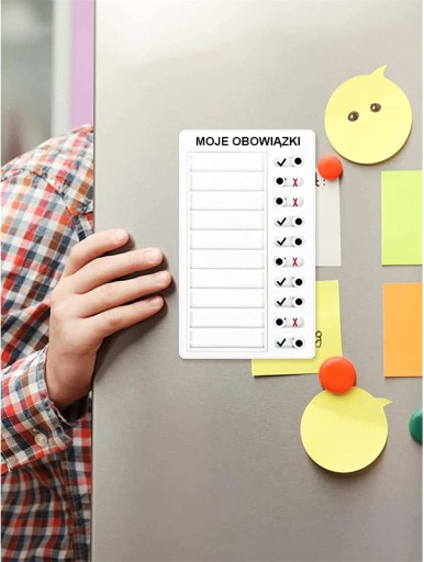 ➡️Przygotowanie listy jest niezwykle proste, wystarczy na kartce dołączonej do zestawu wpisać dowolne obowiązki lub przygotować taką listę na komputerze i wydrukować. Następnie demontujemy ramkę, umieszczamy tam karteczkę i montujemy ją ponownie. Wymiary karteczki: 6,8 cm x 17 cm.