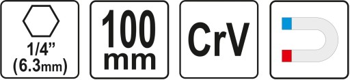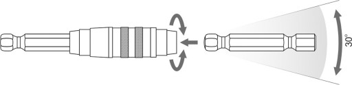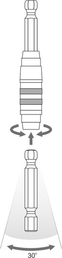 Dwustronny uchwyt magnetyczny HEX 1/4" o długości 100mm posiadający możliwość obrotu w zakresie 30°.