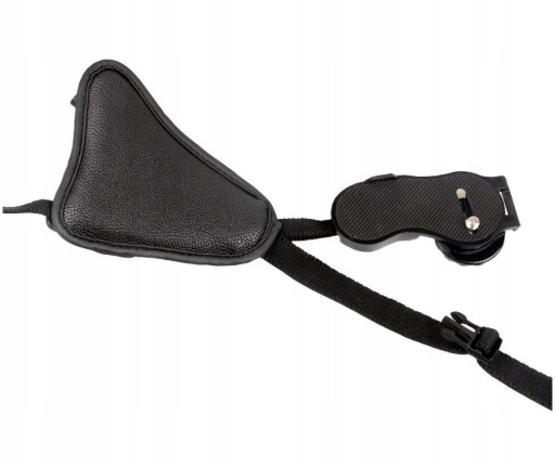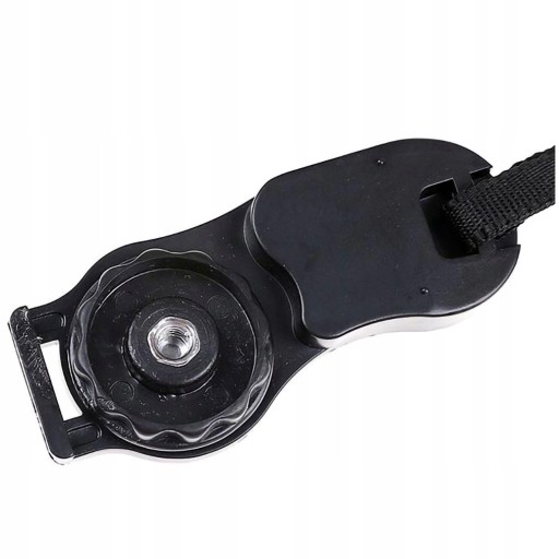 Dolny element paska mocuje się od spodu aparatu w gwint statywowy 1/4″, a górny element przypinany jest do uchwytu od paska aparatu.