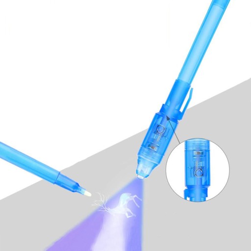 Tusz podczas pisania jest niewidoczny, aby przeczytać niewidzialną wiadomość należy podświetlic kartkę. To świetna zabawa w ukrywanie informacji przed niepożądanymi osobami i świetny sposób, by strzec swoich sekretów.