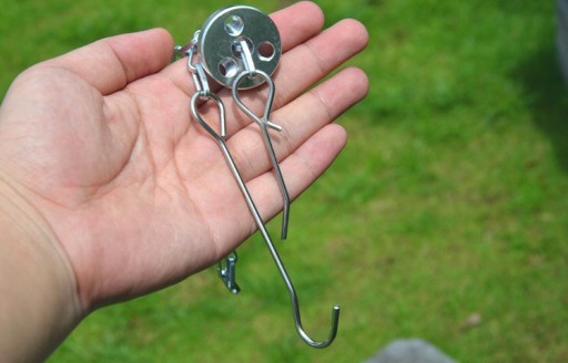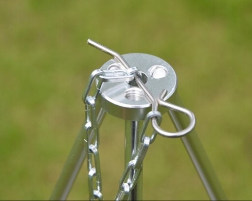 Lekki , składany , aluminiowy trójnóg nad ognisko.