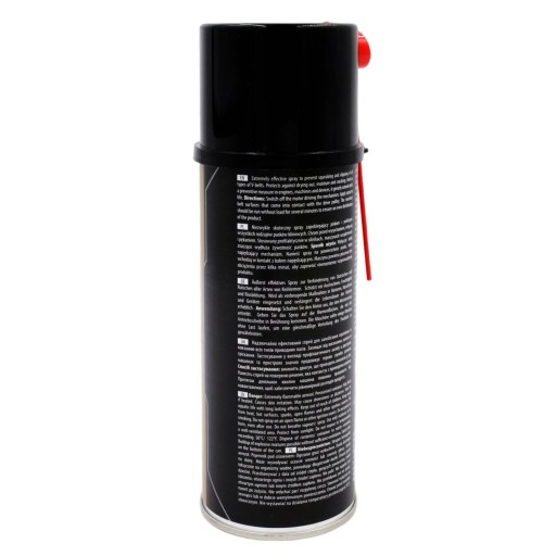 Preparat w sprayu przeznaczony do smarowania pasków klinowych. Usuwa piski. Chroni paski przed wysychaniem, ślizganiem i pękaniem. Może być stosowany we wszystkich maszynach i sprzęcie napędzanym paskiem klinowym. Wydłuża żywotność paska klinowego.