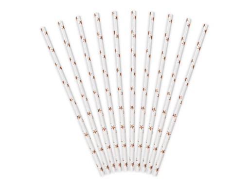 Słomki papierowe różowe złoto gwiazdki 10 sztuk.