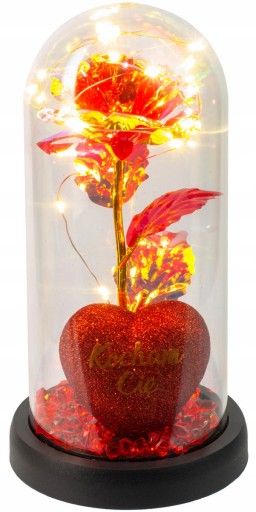 WIECZNA RÓŻA W SZKLE ŚWIECĄCA + PUDEŁKO DODATKOWO NAPIS NA SERDUSZKU -----KOCHAM CIĘ-----