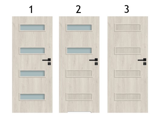 Proponowany model to skrzydło drzwiowe wykonane z ramy MDF wypełnionej wkładem stabilizującym w postaci tzw. plastra miodu. Rama wraz z wypełnieniem jest dwustronnie obłożona płytą HDF i oklejona Finish Folią w kolorze drewna.