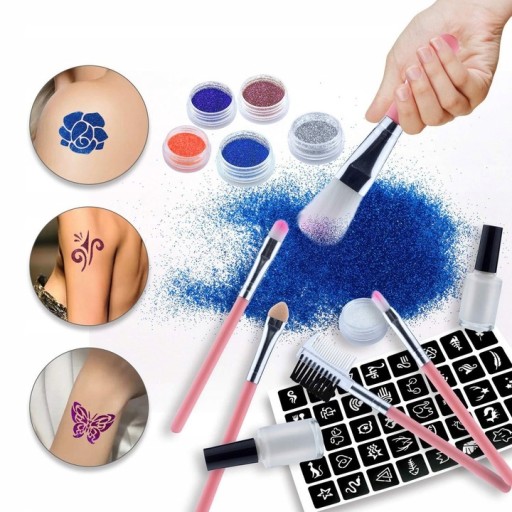 DUŻY ZESTAW DO ROBIENIA TATUAŻY BROKATOWE ZMYWALNE