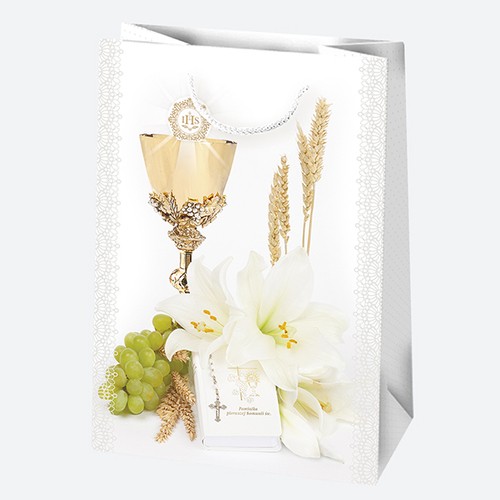 Papierowa torba ozdobna na Komunię Świętą, wzór wysyłąny losowo Wymiary: 23 x 32 x 11 cm 1szt