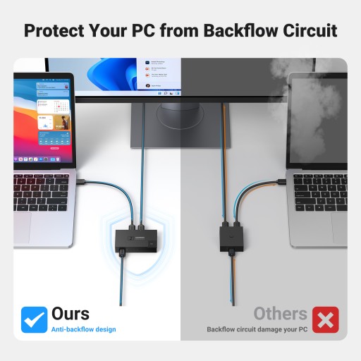 Pozwala również dzielić dostęp do kilku sprzętów pomiędzy 2 komputerami – wystarczy, że naciśniesz dedykowany przycisk.