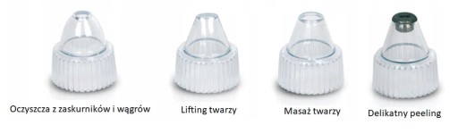 - Czwarta końcówka przeznaczone jest do dokładnego oczyszczenia naskórka z martwych komórek, odtłuszcza oraz wygładza skórę.