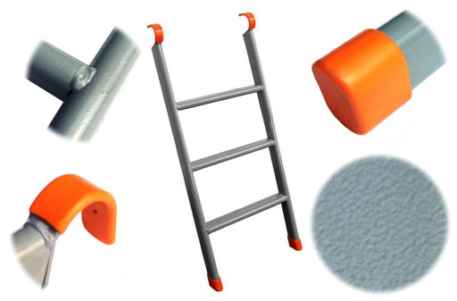 - U góry konstrukcji, drabinka zakończona jest haczykami mocującymi do obręczy trampoliny