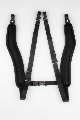Belti ASPX Deluxe pasy z poduszką do akordeonu 120-basowego Oryginalny design połączony z praktycznością i trwałością rozwiązań. Główna część pasa wykonana jest z mocnej skóry naturalnej (dwoina kryta), podwójnej. Poduszka nie jest integralną częścią pasa, stąd dopasowuje się do ciała niezależnie od niego. Wykonana jest z naturalnej, wysokiej jakości skóry i miękkiej pianki. Jest bardzo elastyczna oraz ma anatomiczny kształt w formie litery S, przez co idealnie dopasowuje się do ciała. Pasy te są wygodne dla osób w każdym wieku, również dla dzieci! • Dedykowane do akordeonów 120 bas • Niespotykanie elastyczne i doskonale dopasowujące się pasy • Skóra naturalna typu dwoina kryta, dwuwarstwowa • Wygodna poduszka na ramiona wykonana z wysokiej jakości skóry naturalnej i pianki • Kolor czarny • Długość regulowana asymetrycznie (lewy pas: 85 - 115 cm, prawy pas: 95 - 125 cm - wraz z regulacją na paskach do zaczepów) • W zestawie łącznik do pasów przypinany na klips (napę) • Szerokość poduszki z obszyciem 6 cm • Szerokość paska przy zaczepie 16 mm Pasy wykonane w 100% w Polsce.