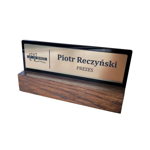 Elegancka drewniana tabliczka na biurko 16cm x 8cm.