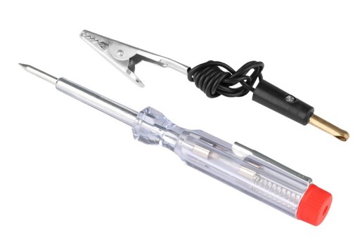 Urządzenie przeznaczone do lokalizacji napięcia w instalacjach elektrycznych samochodów z instalacjami 6/24V. Wewnątrz przeźroczystego uchwytu umieszczona jest lampka, która w momencie wykrycia napięcia zapali się. Przewód z krokodylkiem ułatwi montaż. Jest niezbędny podczas wyszukiwania awarii przewodów elektrycznych w samochodzie oraz służy do szybkiego odnajdywania braku napięcia w układach elektrycznych, bezpiecznikach lub oświetleniu.
