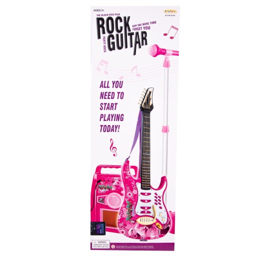 Świetny dla małego artysty - zadbaj o rozwój swojego dziecka! Niech poczuje się jak gwiazda muzyki. Podczas gry świecą migające światełka w gitarze oraz głośniku wzmacniacza.