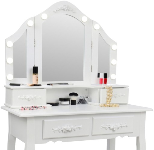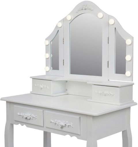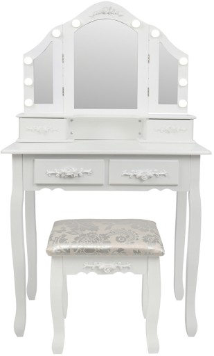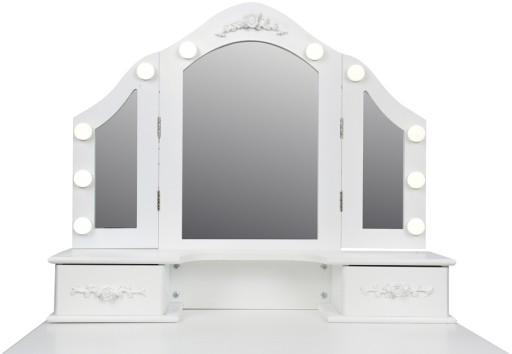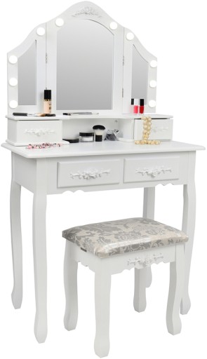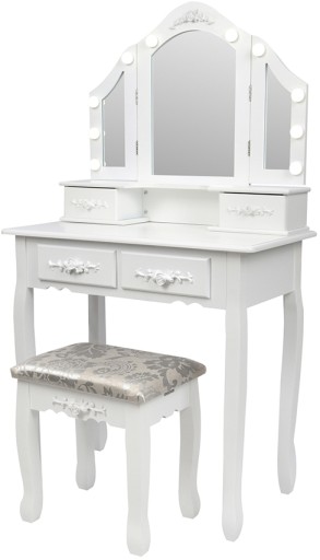 БЕЛЫЙ КОСМЕТИЧЕСКИЙ СТОЛИК СО СВЕТОДИОДНЫМ ЗЕРКАЛОМ + ТАБУРЕТ