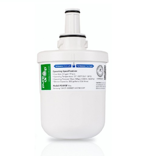 Oryginalny filtr wody Aqua-Pure DA29-00003F, do dwudrzwiowej lodówki SAMSUNG i posiada zainstalowany filtr wewnętrzny o numerach producenta filtra: