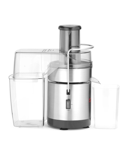 - Specjalnie zaprojektowana pokrywa umożliwiająca sprawne przesuwanie miąższu do zbiornika