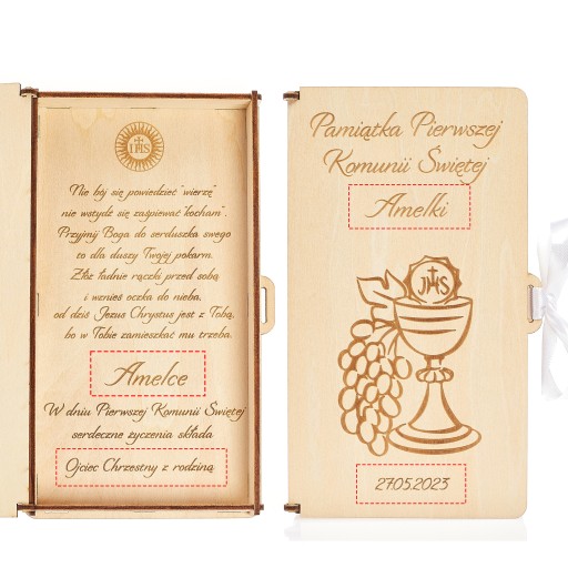 Pamiątka Pierwszej Komunii Świętej pudełko na pieniądze + GRATIS
