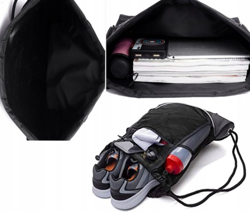 - Plecak ma dużą kieszeń ze sznurkiem ściągającym, która jest mocna i łatwa do otwierania. Główna kieszeń może pomieścić trampki, kije, telefon, tablet, książki. Ubrania itp.