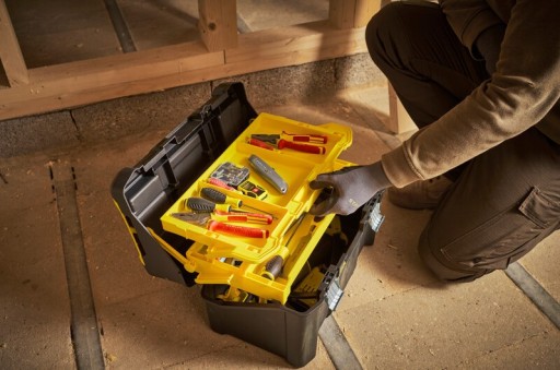 - 3-poziomowa skrzynia narzędziowa STANLEY® Cantilever z wygodnym dostępem do przechowywanych w niej narzędzi i akcesoriów