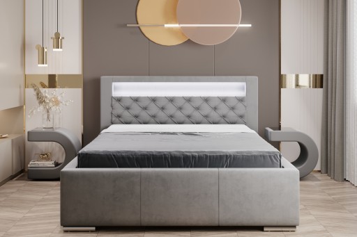 Łóżko tapicerowane TUNIS 160x200 LED na stelażu drewnianym:
