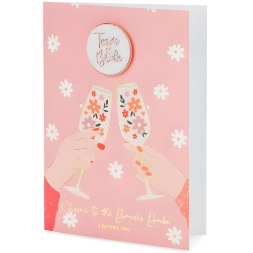Kartka z pinem "Wieczór Panieński - Team Bride", różowy, PartyDeco