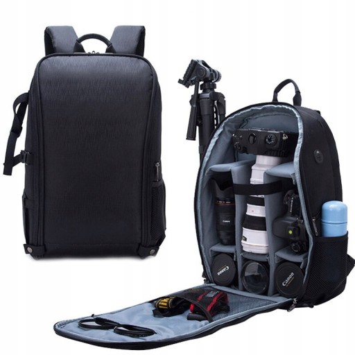 Do plecak można zapakować cały sprzęt, które jest ci potrzebny. Zmieszczą się dwa aparaty wraz z obiektywami, lampa flash, dodatkowy obiektyw, duży statyw, laptop do 15,6", kable, karty pamięci, zasilacze itd.