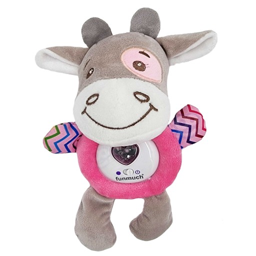 Interaktywny Pluszowy Byczek uspokoi oraz uśpi Twoje dziecko. Zabawka posiada opcję włączenia kołysanki dla naszej małej pociechy oraz posiada opcję wyświetlania kolorowych światełek, dzięki którym nasz maluch nie znudzi się zabawką. Ten miękki w dotyku miś stanie się przyjacielem naszego dziecka już od najmłodszych lat. Zabawka jest przystosowana dla niemowląt dlatego jest miękki wypełniony watą przez co nie musimy martwić się o to że nasza pociecha może coś sobie zrobić. Dodatkowo pluszaka bezpiecznie oraz łatwo można czyścić (wyjmując mechanizm) bez obaw o jakiekolwiek uszkodzenia.