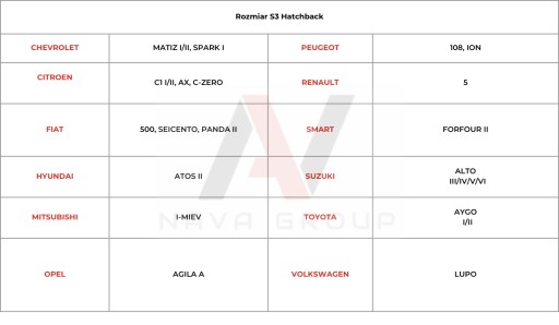 Rozmiar pokrowca: S3 hatchback