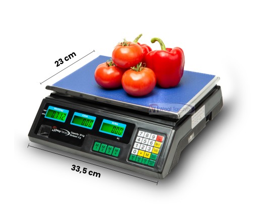 Po położeniu towaru na szalce i wpisaniu ceny waga sama wylicza wartość towaru