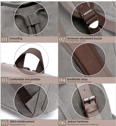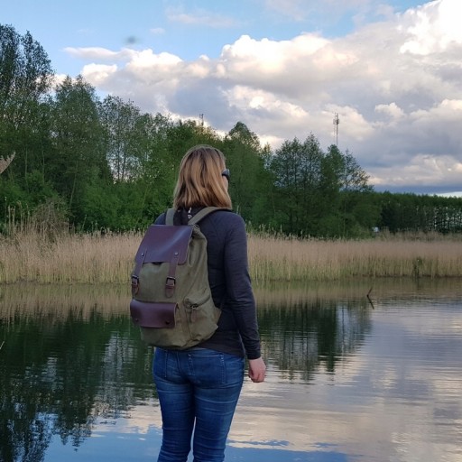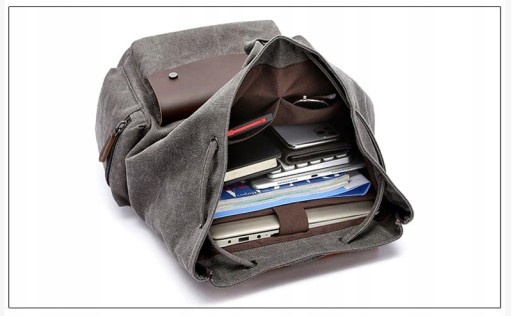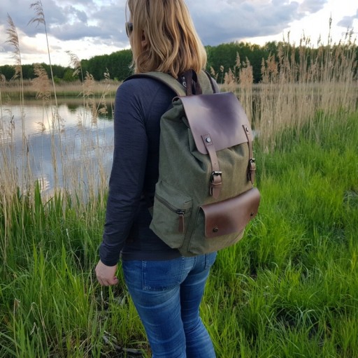 Plecak wykonany jest z wytrzymałego materiału płóciennego. Klapy uszyto z wodoodpornej i łatwej w czyszczeniu ekoskóry