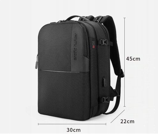 Biznesowy plecak na laptopa do 15,6" 2 in 1, który może być przez ciebie używany jako pojemny bagaż podręczny na wypady do kilku dni. Plecak pomieści laptopa do maksymalnych rozmiarów jak podane wyżej w specyfikacji. Plecak składa się z dwóch części, które można w łatwy sposób ze sobą połączyć. Pierwsza część to pojemny plecak, który można rozłożyć na płasko jak walizkę i zapakować do niego ubrania na kilkudniowy wyjazd lub używać na co dzień. Druga część jest przeznaczona na laptopa oraz akcesoria. Do każdej z części można przypiąć szelki i używać jako plecaka. W ten sposób masz do dyspozycji dwa plecaki, które za pomocą zamka można połączyć w jeden duży. Plecak został wykonany z wytrzymałego materiału - oxfordu. Zapewnia to wytrzymałość, wodoodporność oraz łatwość w czyszczeniu. Główną kieszeń plecaka możemy otworzyć jak walizkę, dzięki czemu mamy łatwy dostęp do jej całej zawartości. Plecak polecany zwłaszcza na kilkudniowe podróże lotnicze jako bagaż podręczny, gdzie liczy się wielkość i wygoda. Plecak można nosić jak zwykłą torbę ponieważ jest możliwość schowania szelek.