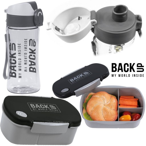 Zestaw śniadaniowy bidon i śniadaniówka lunchbox czarno - popielaty BackUp