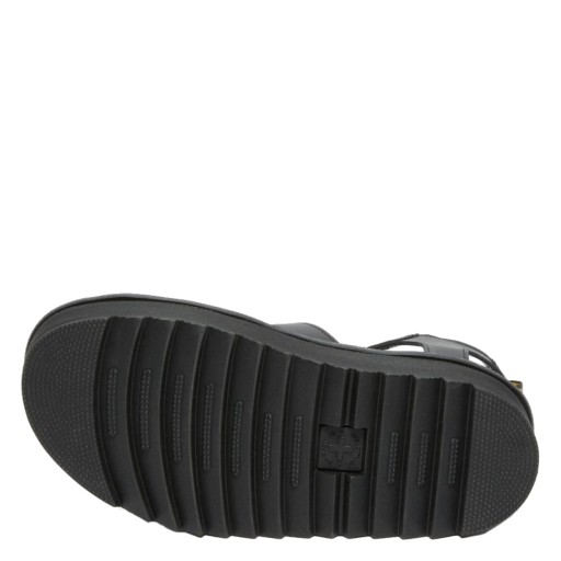 Oryginalne sandały z kolekcji obuwia Dr. Martens. Linia #QUAD. Wykonane ze skóry naturalnej w kolorze czarnym. Zapinane na pasek z metalową klamerką. Profilowana wkładka. Wyjątkowo lekka podeszwa z charakterystycznym protektorem, doszywana do wierzchu buta przy pomocy słynnej, żółtej nici (technologia Goodyear Welted). Wysokość podeszwy: przód - 4,50 cm, tył - 5,00 cm.