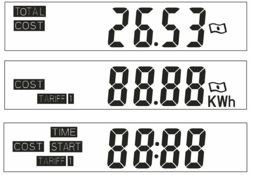 1. Włącz zasilanie, ekran wyświetla zegar w drugim rzędzie, zobacz ustawioną przez ciebie stawkę za energię elektryczną.
