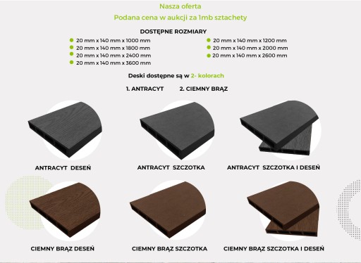 Podana cena 26.90zł dotyczy 1 metra bieżącego sztachety deski w wykończeniu szlifowanym lub deseń drewna o profilu 20x140mm