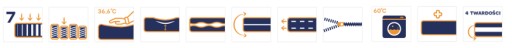 Pianka wysokoelastyczna- kolor szary- w połączeniu z 7-strefową sprężyną typu Multi zapewnia doskonałą elastyczność punktową i najlepsze podparcie; twardość wysoka o podwyższonej elastyczności. Strona dedykowana osobom cięższym.