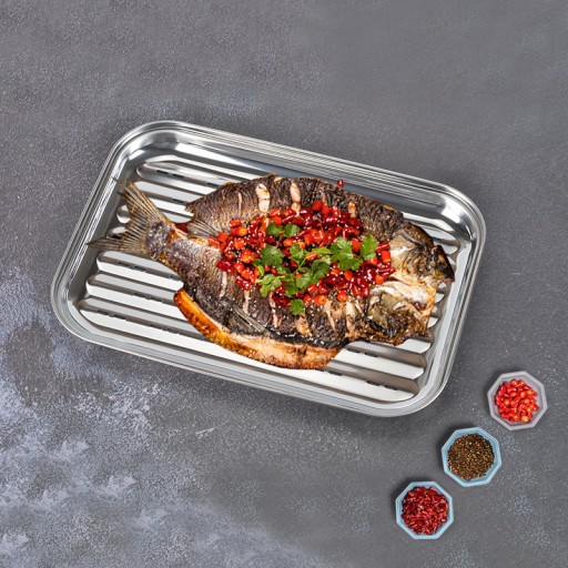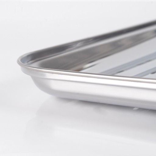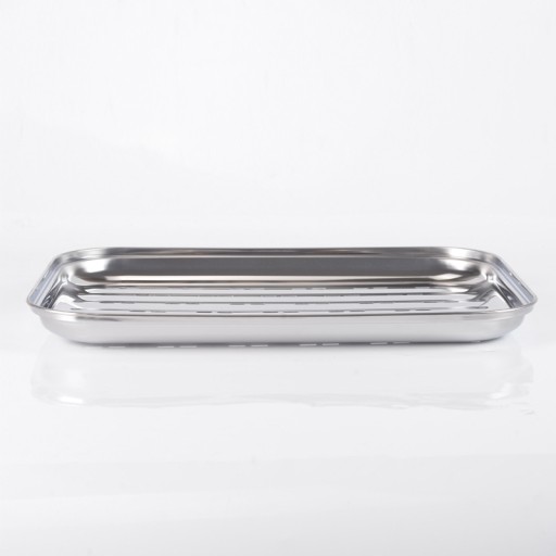 Stalowa taca wielokrotnego użytku. Aż 4 mm grubości stali zapewni długie użytkowanie tacki. Tackę można myć ręcznie.