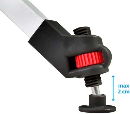 - Stopa o regulowanej wysokości umożliwia idealne wyrównanie poziomu na nierównym podłożu