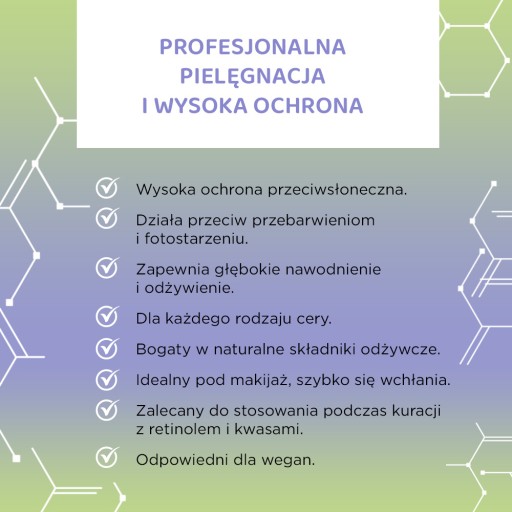 - Fotostabilne chemiczne filtry nowej generacji, które skutecznie chronią przed szkodliwym promieniowaniem UVB i UVA (PA++++), zapobiegając fotostarzeniu i powstawaniu przebarwień: