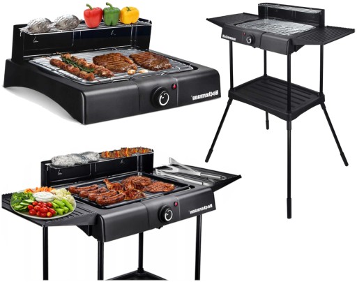 Wygodne grillowanie w domu i na dworze bez konieczności długiego rozpalania i nieprzyjemnego dymu jest możliwe z grillem elektrycznym , który posiada dużą przestrzeń do przygotowywania jedzenia, a także dwie boczne półki i nóżki, które mogą zamienić go w grill wolnostojący.