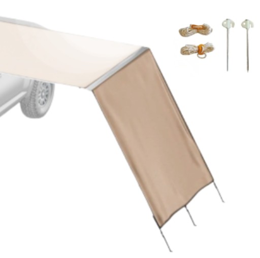 - Zestaw zawiera: markizę boczną, sznurki i szpilki mocujące