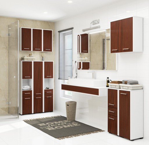 SZAFKA - SŁUPEK REGAŁ ŁAZIENKOWY FIN 2D 1SZ BIAŁY / WENGE
