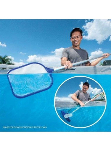 W skład zestawu wchodzi także podbierak/siatka płaska umożliwiająca oczyszczenie powierzchni wody z owadów, liści i innych pływających w wodzie zanieczyszczeń. Podbierak/siatkę można używać sam w przypadku mniejszych basenów lub też zamocować na dołączonym do zestawu kiju/drążku teleskopowym w celu zwiększenia jego zasięgu. Dzięki siatce usuniesz liście, owady czy inne zabrudzenia które znalazły się w twoim basenie. Drobne oczka siateczki wyłapią nawet małe przedmioty.