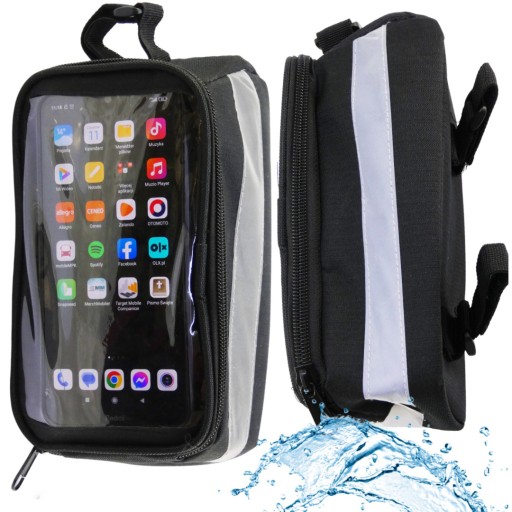 Ta wodoodporna torba pozwala na bezpieczne przechowywanie telefonu podczas jazdy rowerem, a jednocześnie umożliwia korzystanie z niego w dowolnym momencie.